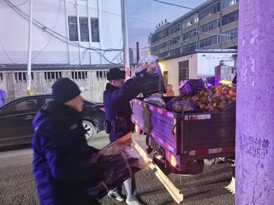 “多亏你们俩来得快,不然这水果全被压坏了。”3月24日傍晚,在通河县农业银行东侧的榆树街上,看着散落一地的水果被民警一箱箱捡回车上,货主紧紧拉住哈尔滨市公安局通河县局长安派出所民警张雷的手,眼眶里泛着感动的泪光。