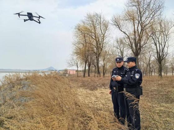 市公安局打破传统巡护模式,构建“水陆空”立体化防控体系,让科技成为生态守护的硬核支撑。水上,配备高清监控的执法船艇对重点江段进行不间断巡查,实时监测水域动态与可疑船只。陆地上,民警采取“车巡+步巡”模式,携带便携式检测设备开展巡查,加强重点区域和特殊节点的巡逻防护。空中,搭载热成像仪的无人机化身“空中哨兵”,对松花江流域、湿地保护区及偏远林区开展常态化巡航,精准捕捉非法捕捞、盗伐等异常情况,为生态保护提供强有力的科技支撑。