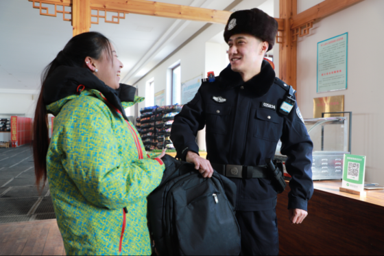 1月20日下午,在通河县铧子山滑雪场,山东游客张女士焦急地向正在执勤的民警求助称,其装有钱包、身份证及照相机的黑色双肩包不慎遗失。民警立即开展查找工作,并联系雪场工作人员通过广播发布寻物启事。很快,对讲机内收到反馈,有热心游客拾到了双肩包,完璧归赵。张女士高兴得连连向民警道谢。