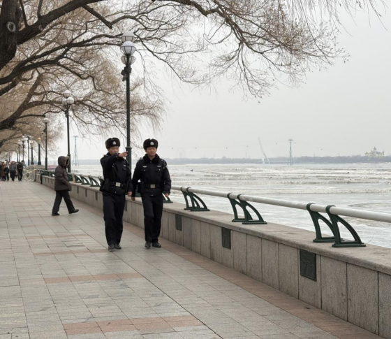 面对春融期冰面状况复杂多变的情况,哈尔滨市公安局组建专职巡逻队伍,在松花江临江区域开展巡逻,对江畔公园、下江道口等重点部位进行细致排查,及时发现并劝离靠近危险冰面的市民和游客,用脚步丈量安全,用耐心和责任心筑起一道坚实的防线。