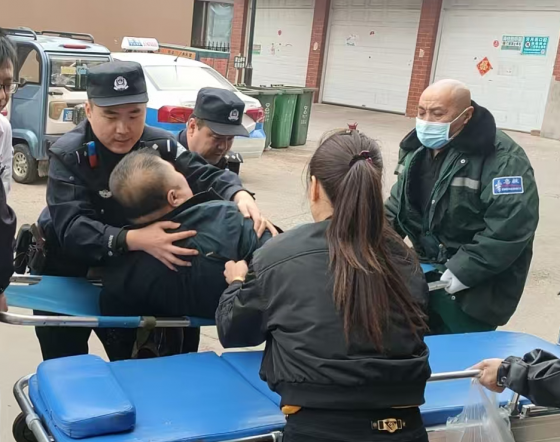与此同时,民警同步拨打了120急救中心电话,准确报告了事发地点和伤者状况。几分钟后,医护人员抵达现场。民警又主动协助急救人员对伤者进行初步检查和处理,随后合力将伤者平稳转移至担架上。从小区内到救护车停靠点,民警一路小心护送,确保转运过程安全无虞。