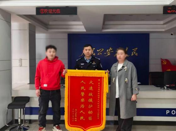 民警默默奉献,百姓铭记在心。患儿康复后,李先生夫妇经过多方打听,专程来到大成派出所,见到伸出援手的郭锋、何文博后,提前准备好的锦旗送到民警手中,锦旗上“火速救援护幼苗,人民警察为人民”十四个金字,深深印刻着群众的感激之情。更令人动容的是,李先生夫妇还带来了一份特殊的礼物——一段由康复患儿亲口录制的感谢视频。视频里,孩子清脆的声音说道:“谢谢警察叔叔,将来我也要像你一样!”