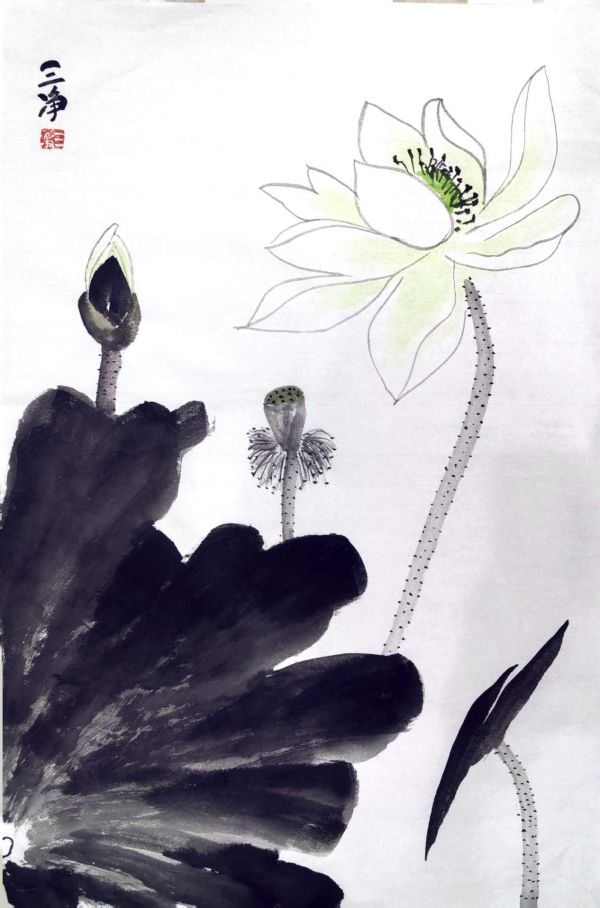 三净书画纯靠自学成才。无论寒暑,闻鸡起舞,荷衣泼墨,数十载如一日,终有所成。其作品逐步形成独特风格,创新有据,运笔无媚,深受业内专家高度评价。