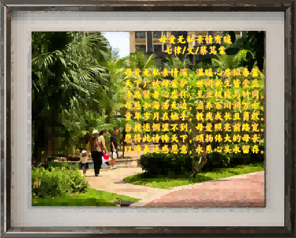 蔡笃棠先生艺术创作中最动人的特质,莫过于他那份深植于民间的情怀。他的诗词创作从不居高临下,而是始终保持着对平凡生活的深切关注和真诚礼赞。在《母爱无私亲情有暖》这首诗中,他将母爱的伟大娓娓道来,”母慈如海浩无边,滋养百川润万方”的比喻既延续了传统颂诗的庄重,又饱含着现代人特有的情感温度。这种将个人体验升华为普遍情感的创作方式,使他的诗词既具有打动人心的亲切感, 又蕴含着深远的人文关怀。正是这种对普通人的持续关注,使他的作品在浮躁的当代社会中显得尤为珍贵。蔡笃棠先生的诗词与摄影创作形成了独特的互文关系,二者相得益彰,共同构建出一个完整而丰富的艺术世界。