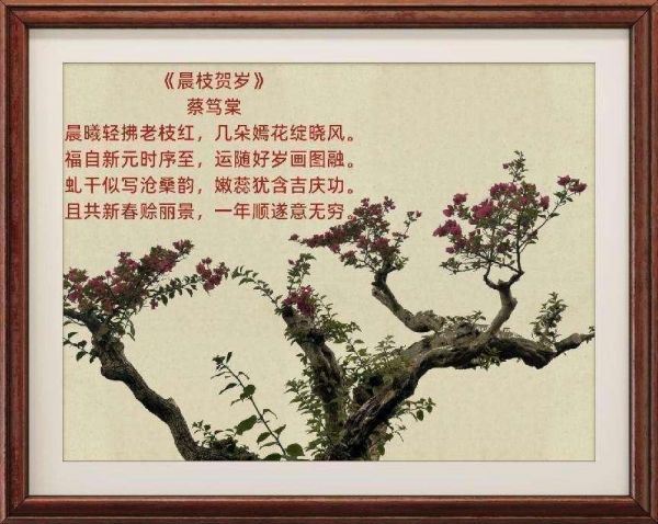 虬干似写沧桑韵,嫩蕊犹含吉庆功。