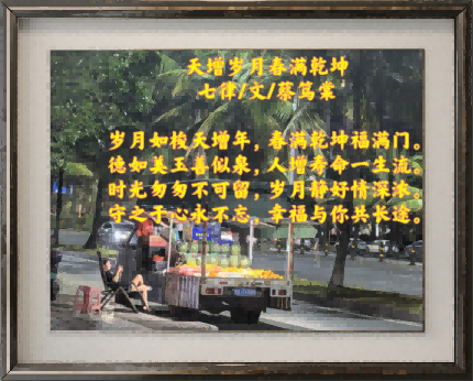 综观蔡笃棠先生的艺术成就,我们看到的是一位在传统与现代之间自如游走的智者,一位始终心怀民众的仁者。他的诗词创作既保持了古典诗词的韵律之美,又大胆融入现代语汇和当代意识,展现出极强的艺术创新力。更为难得的是,他的艺术始终保持着对普通人的温情注视,无论是诗词中对母爱的歌颂,还是摄影中对市井生活的记录, 都体现着一位艺术家的社会责任和人文担当。在这个价值多元的时代,蔡笃棠先生以其扎实的艺术功底、深沉的家国情怀和持久的创作热情,为当代文艺界创作树立了值得借鉴的典范,他的艺术实践必将对后世产生深远的影响。