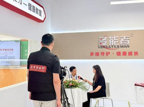 展会现场,多能者并未局限于某一细分品类,而是系统性地展示了“好光护眼”、“好声护耳”、“好课桌护脊”及“好空气护学”四条产品线。多能者总经理兼技术总监许建兴在接受“中国教育装备网”记者采访时指出:“我们的思考源于一个深刻的行业共识:学生在教室中是一个完整的、动态的个体。他/她需要同时看、听、坐、呼吸。校园环境的健康需求,已从关注单一要素,升级为对身心‘全方位保护’的系统性工程。”