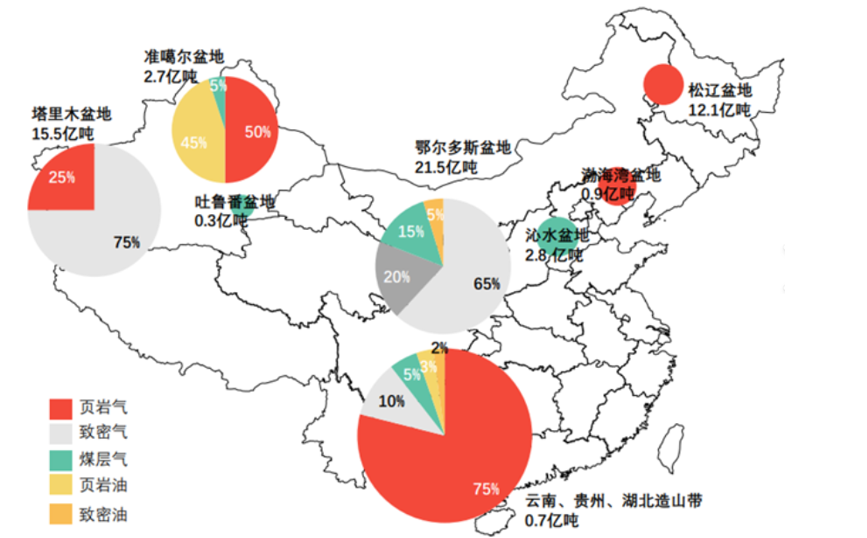 中国非常规油气资源分布