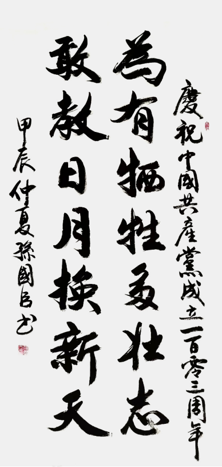 2024年4月10日至16日,作品在日本东京都美术馆参加第36届全日中展(东京书画艺术大展)。4月12日,作品在法国巴黎中法建交60周年《新丝路国际艺术巡展》中展出。6月12日,作品参加了在北京民族文化宫举办的《中国气韵以艺通心——书画艺术名家邀请展》。7月25日作品参加了《艺术与和平——首届国际艺术名家网络双年展》,7月27日,作品在“2024法国巴黎奥运国际艺术交流展”上展出并获金奖,由中国艺术代表团团长岑传理先生和工作人员共同擎起合影留念。另有两幅作品被世界体育名人收藏。8月,书法作品《艺术与和平·世界充满爱》入选第六届中国书法·兰亭书展。9月24日作品参加北京大学“百年风华·庆祝中华人民共和国成立75周年暨当代中国书画名家交流展”。