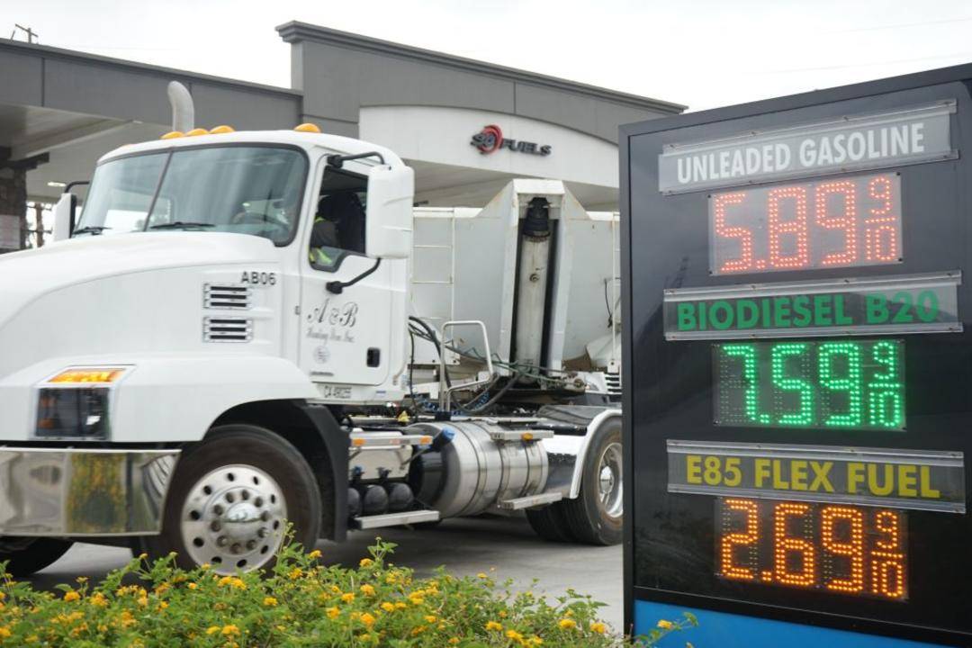 这是3月31日在美国加利福尼亚州蒙罗维亚市一座加油站拍摄的油品价格。新华社发(曾慧 摄)